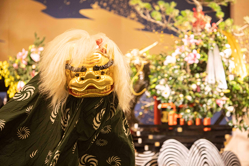 | お正月気分を盛り上げる笛や太鼓のお囃子の響きに包まれながら、獅子舞の一行が威勢よく練り歩きます。伝統的な舞で邪気を払い、福を招く獅子舞を、ぜひお愉しみください。 | |