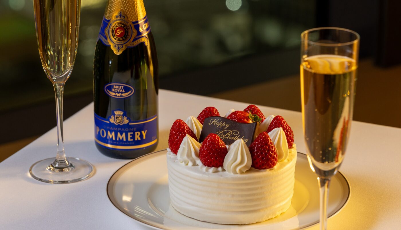 ホテルオリジナルの苺ショートケーキ(12cmホール)と、シャンパーニュ(ハーフボトル)1本をルームサービスでお届けし、記念日をささやかに彩ります。オークラ東京で、想い出に残るひとときをお過ごしください。